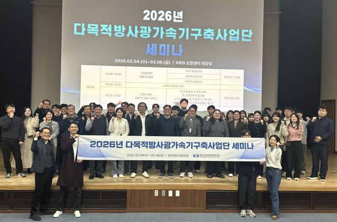 공지사항 테스트 검색 [전체 카테고리] 세미나 외부행사 내부행사 일반 [검색어 분류] 제목+내용 제목 내용 검색 전체 : 93건 현재 페이지 : 1 / 16 [20260309] 대형가속기 종합계획 수립을 위한 간담회 작성일 2026-03-10 조회수 250 [20260304~0306] 2026 다목적방사광가속기구축사업단 세미나 작성일 2026-03-10 조회수 117 [20260212] CB 본제품 전량 입고 기념식 작성일 2026-02-13 조회수 149 다목적방사광가속기 조감도 작성일 2026-02-04 조회수 154 [20260127] 과기정통부 다목적방사광가속기 현장 방문 작성일 2026-01-27 조회수 178 [20260121] 나주시의회 부지현장 방문 작성일 2026-01-21 조회수 147 1 2 3 4 5 6 7 8 9 10 1 / 16